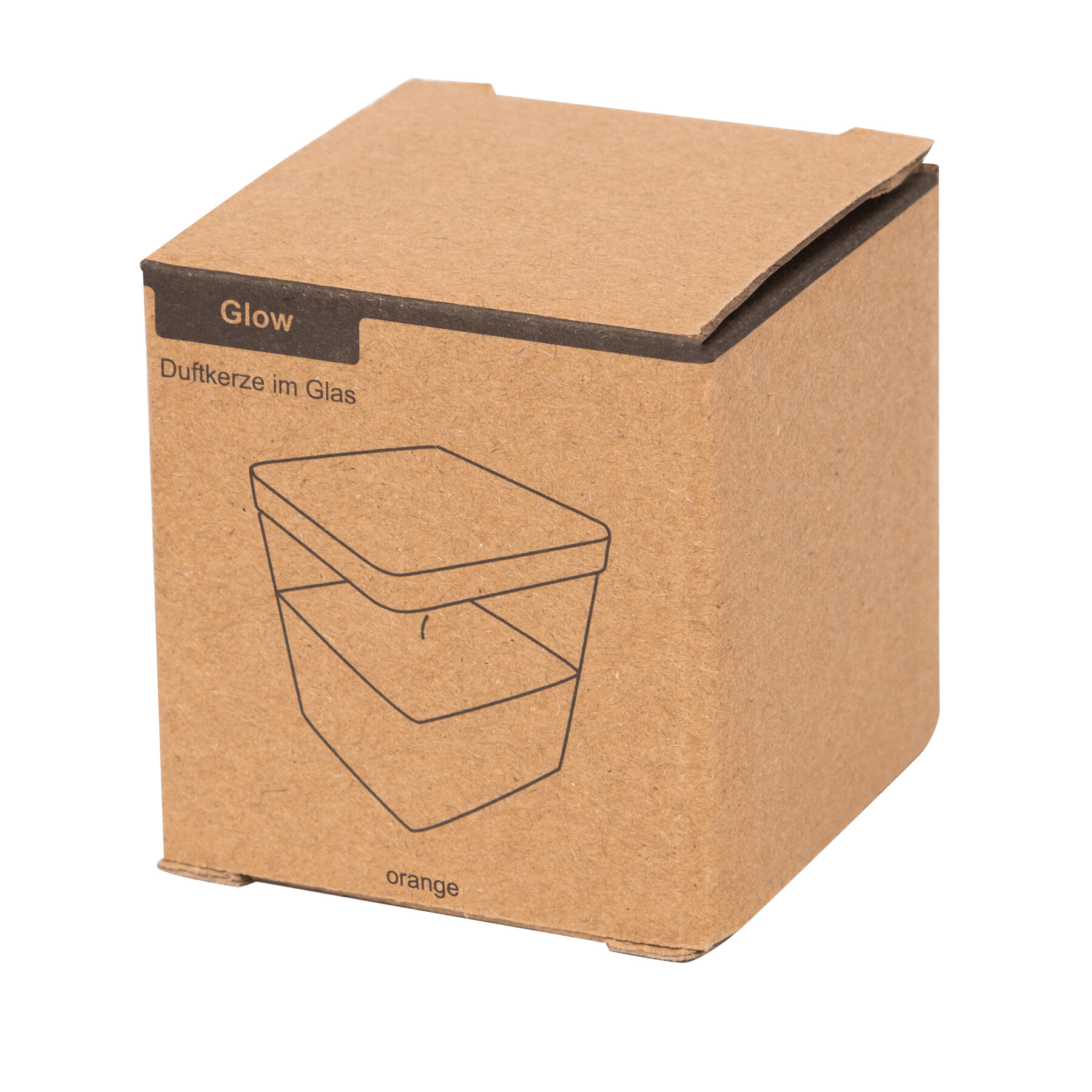 Świeczka zapachowa GLOW w szklanym kwadratowym naczyniu. Kolorowy wosk ma zapach wanilii. Posiada bambusową pokrywkę z silikonowym pierścieniem uszczelniającym. Czas palenia się świeczki to ok. 8 godzin.