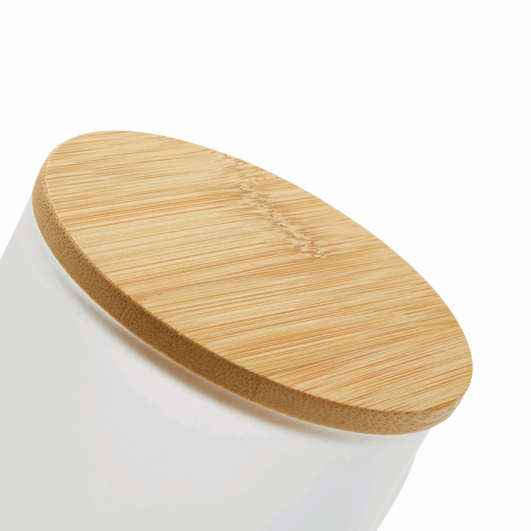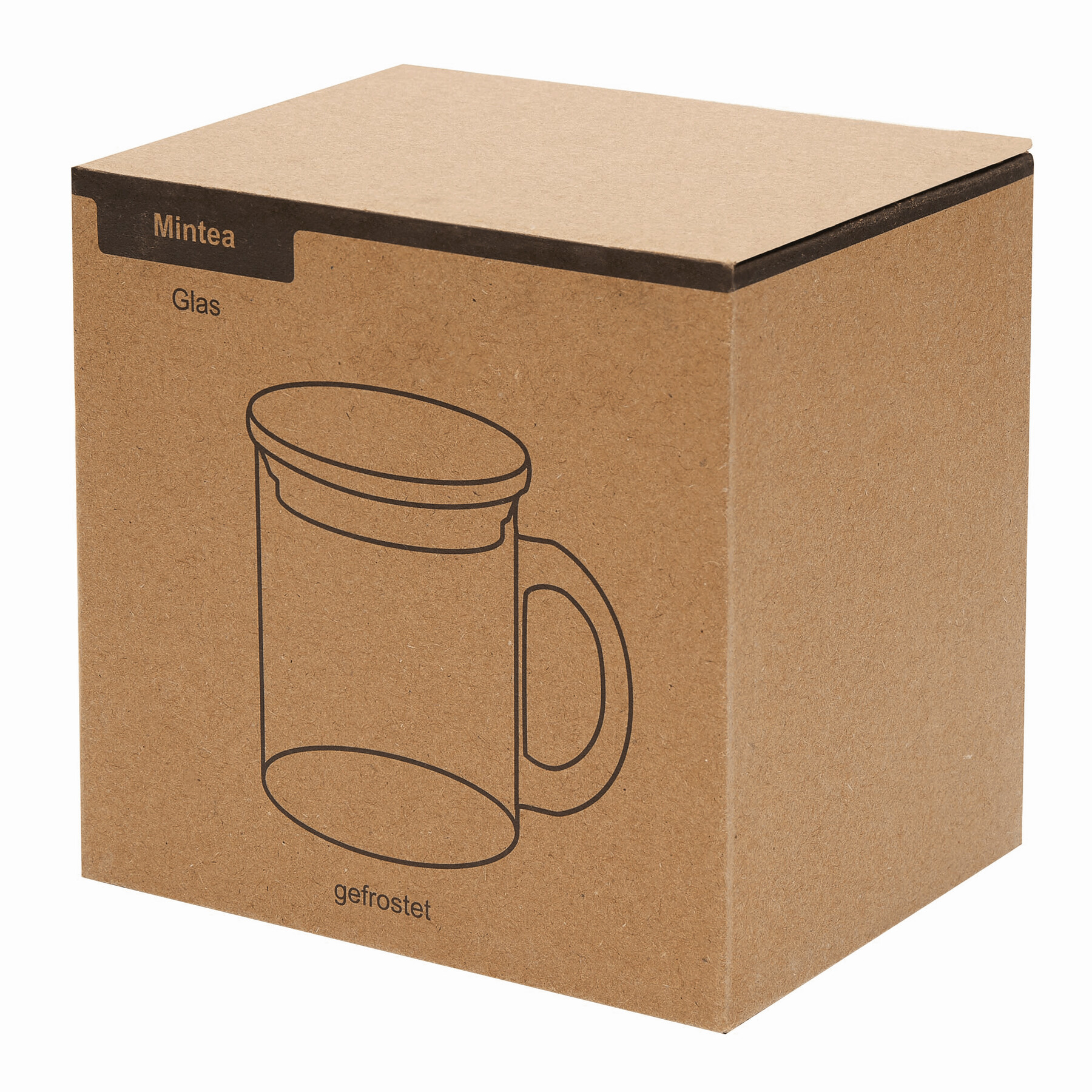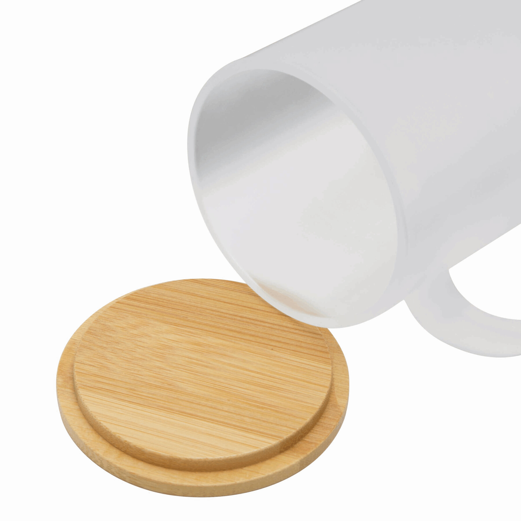Szklanka MINTEA z uchwytem, bambusowa pokrywka, szkło przezroczyste, pojemność ok. 330 ml.