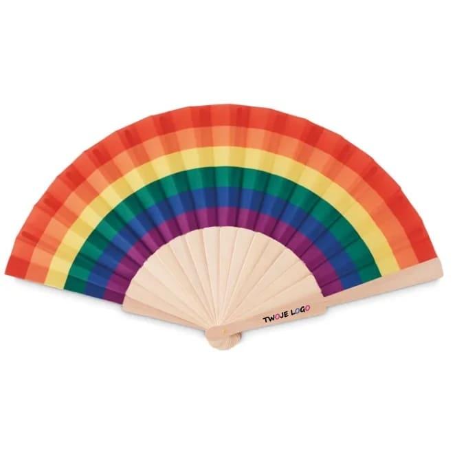 Tęczowy drewniany wachlarz BOWFAN z nadrukiem na zamówienie