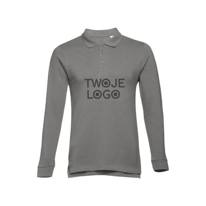 Męski t-shirt polo z długim rękawem ze 100% bawełny o splocie piqué (210 g/m²) ze zgrzebną przędzą bawełnianą (kolor 183: 85% bawełna/15% wiskoza). Polo o regularnym fasonie, z prążkowanym kołnierzykiem i rękawami. Kołnierzyk jest wzmocniony taśmą piqué. Posiada 3 dopasowane kolorystycznie guziki (dodatkowy guzik umieszczony w szwie wewnętrznym). Zszywany po bokach, z małymi rozcięciami w szwach bocznych. Rozmiar: 3XL