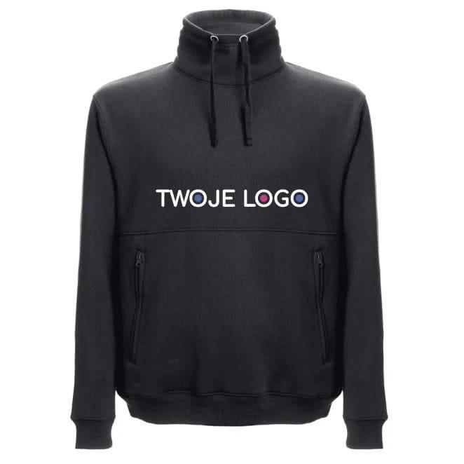 Bluza (unisex) z kapturem z 50% bawełny i 50% poliestru (320 g/m²), zgrzebna od wewnątrz. Z wysokim kołnierzem i kapturem z tafty, schowanym wewnątrz kołnierza, otwieranym na zamek błyskawiczny. Ciekawy szew w okolicy brzucha i ściągacze 1x1 w mankietach i w pasie. Zawiera 2 boczne kieszenie z zamkami w pasującym kolorze Rozmiary: XS, S, M, L, XL, XXL