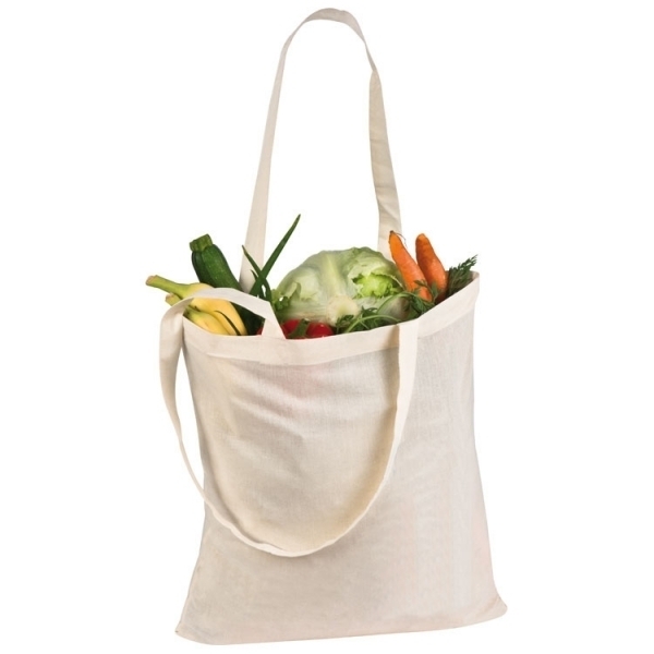 Bawełniana torba z długimi uszami, w naturalnym kolorze. Gramatura 140 g/m², długość ucha to ok. 77 cm). Posiada certyfikat Oeko-Tex® STANDARD 100.