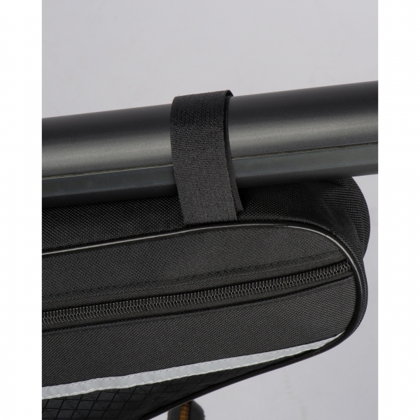 Torba na rower, wykonana z wytrzymałego poliestru 600D, z paskami odblaskowymi. Torbę można łatwo zamontować na ramie roweru.