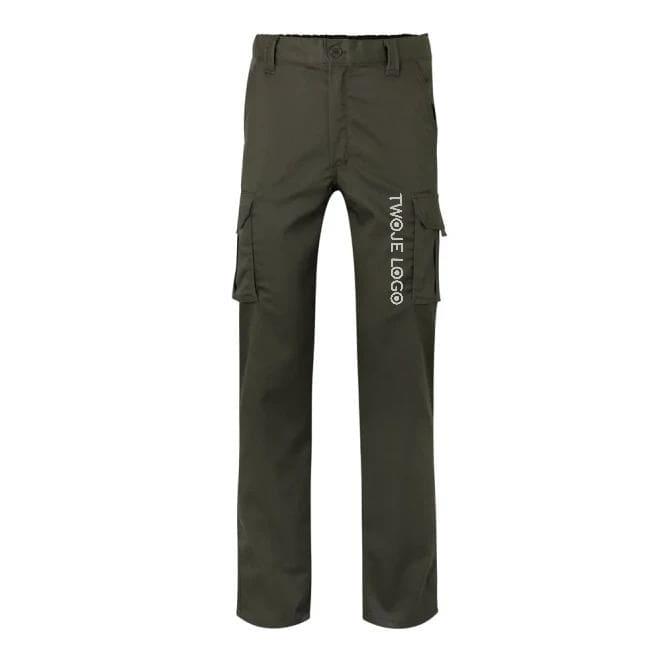 VL PAN. Dwukolorowe, elastyczne spodnie z wieloma kieszeniami (240 g/m²), z bawełny (46%), EME (38%) i poliestru (16%) z nadrukiem logo