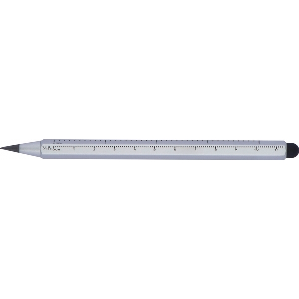Długopis wieczny z niekończącym się wkładem, zostawiającym ślad podobny do ołówkowego. Długopis posiada nadrukowaną na korpusie miarkę oraz końcówkę do obsługi ekranów dotykowych - touch pen.