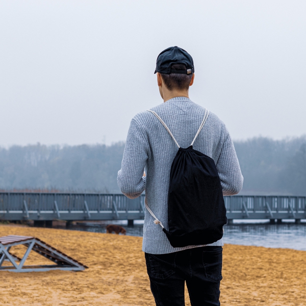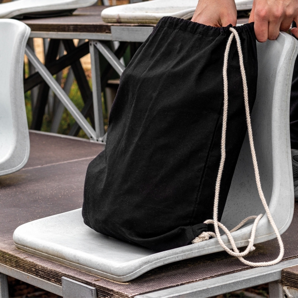 Przyjazny środowisku worek sportowy wykonany z bawełny o gramaturze 140g/m², z certyfikatem OECO Tex standard 100. Świetny jako worek na buty.