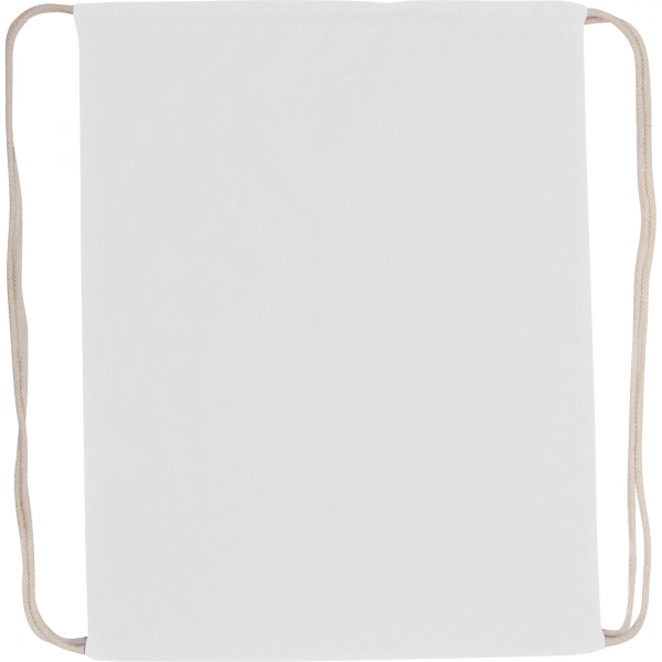 Worek bawełniany o gramaturze 140 g/m2 z certyfikatem OEKO-TEX. Zamykanie za pomocą ściąganych sznurków. Sznurki nie są regulowane.