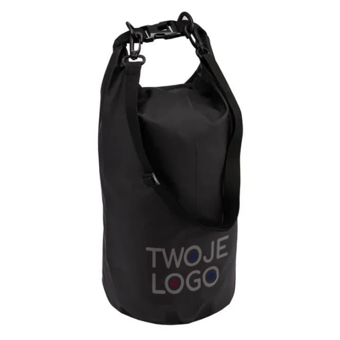 Wodoodporny worek o gumowanej powierzchni. Pojemność 10 litrów. Wyposażony w szczelne rolowane zamknięcie i odpinany pasek na ramię.
