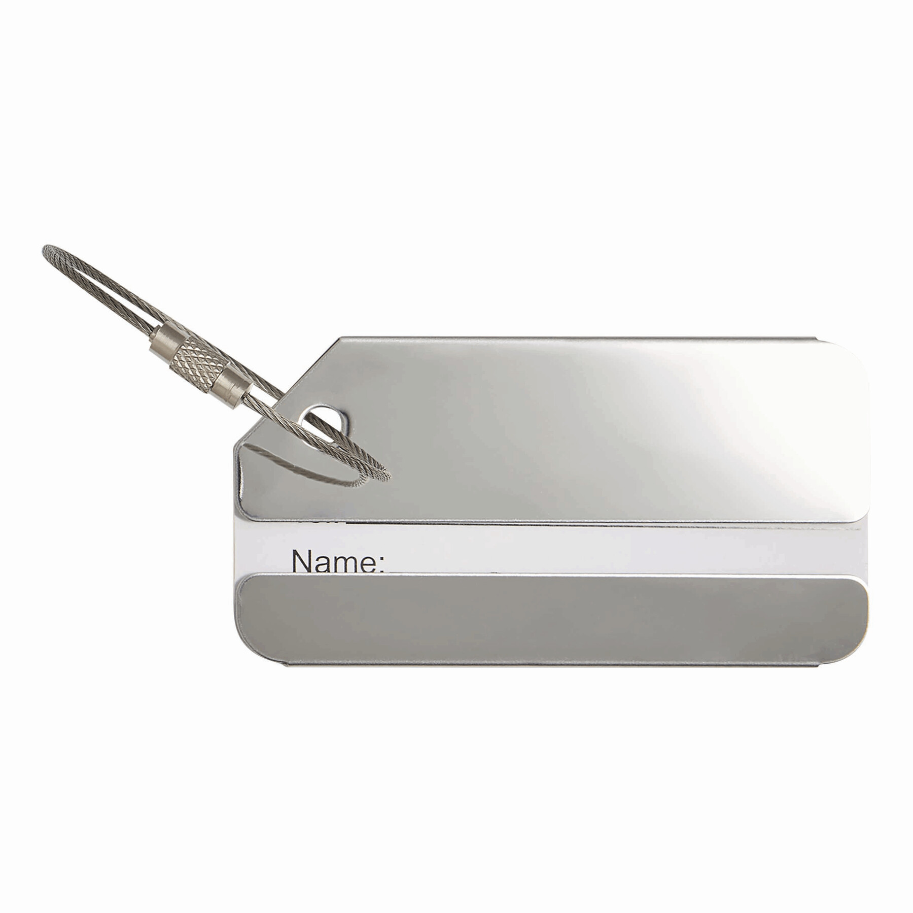 Zawieszka bagażowa TRAVELLER z miejscem na adres. Solidna metalowa linka z bezpiecznym zamkiem, wykonana ze stali nierdzewnej.