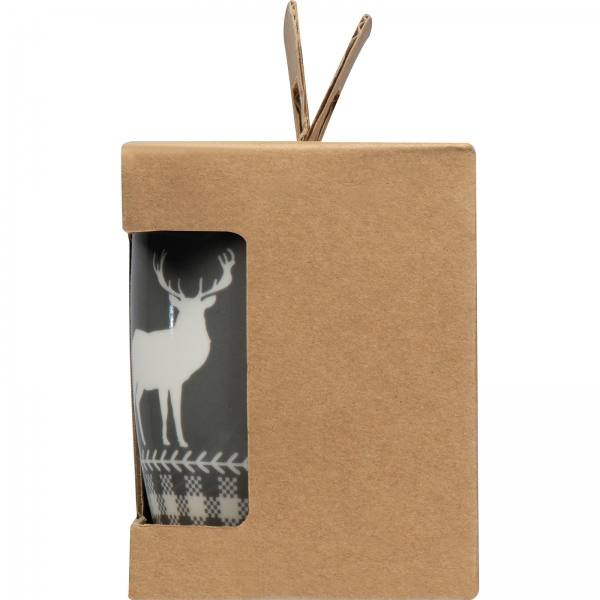 Zestaw dwóch kubków ceramicznych ze świątecznym motywem. Każdy kubek ma pojemność 300 ml. Eleganckie opakowanie pięknie prezentuje się pod choinką i jest przyjazne dla środowiska.