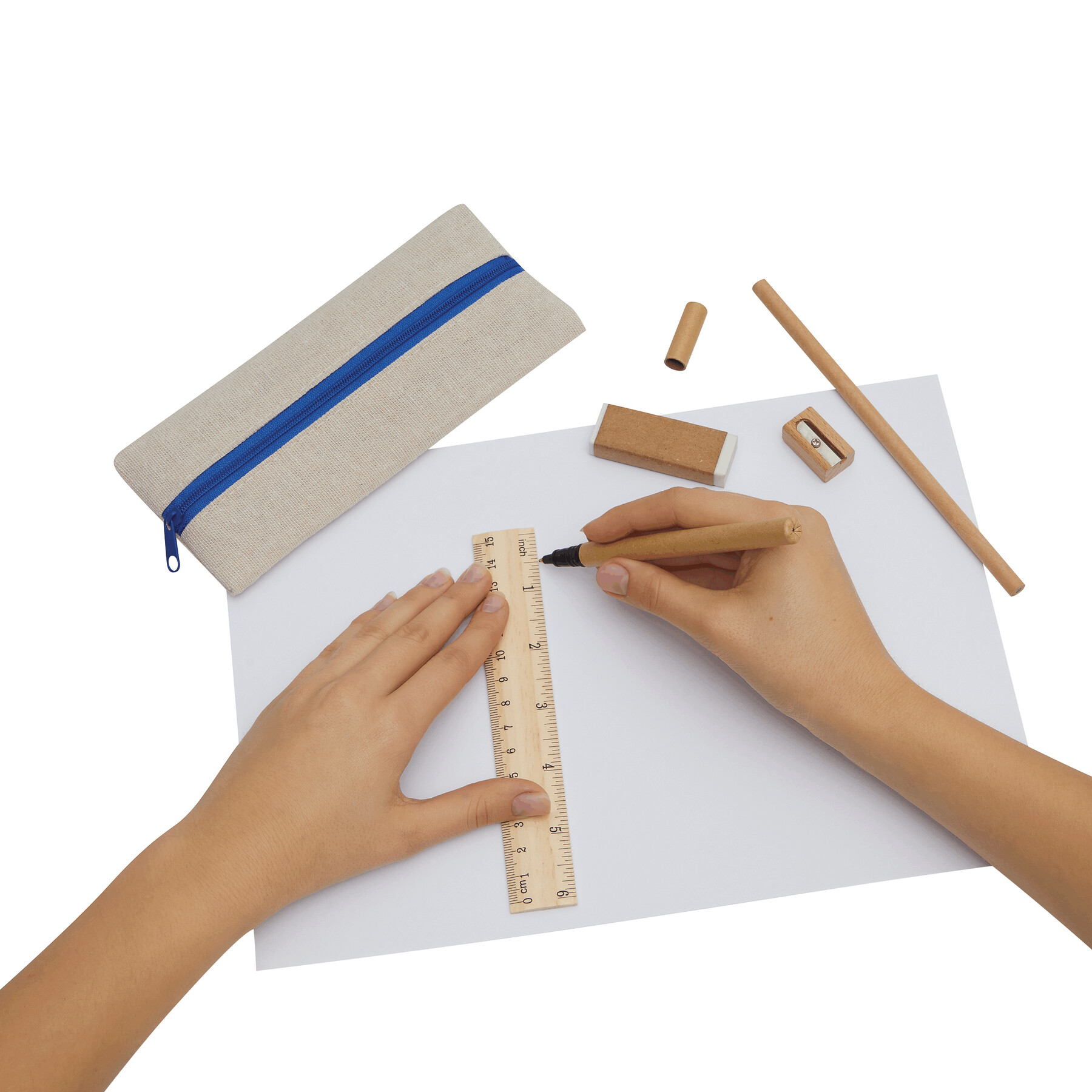 Zestaw do pisania SCHOOLMATE 5-częściowy zestaw składający się z piórnika z gumką, ołówka, temperówki, gumki i linijki (15 cm).