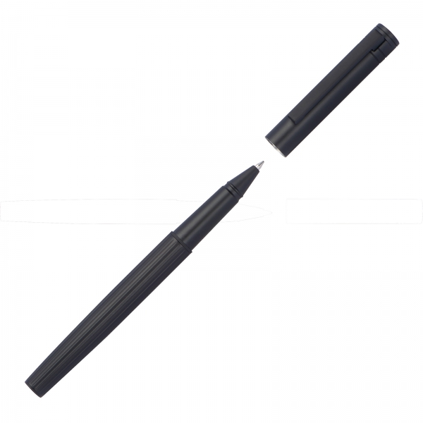 Zestaw piśmienniczy marki Ferraghini składający się z długopisu i pióra kulkowego. Zestaw wykonany z metalu, o prążkowanej powierzchni, piszący na niebiesko.