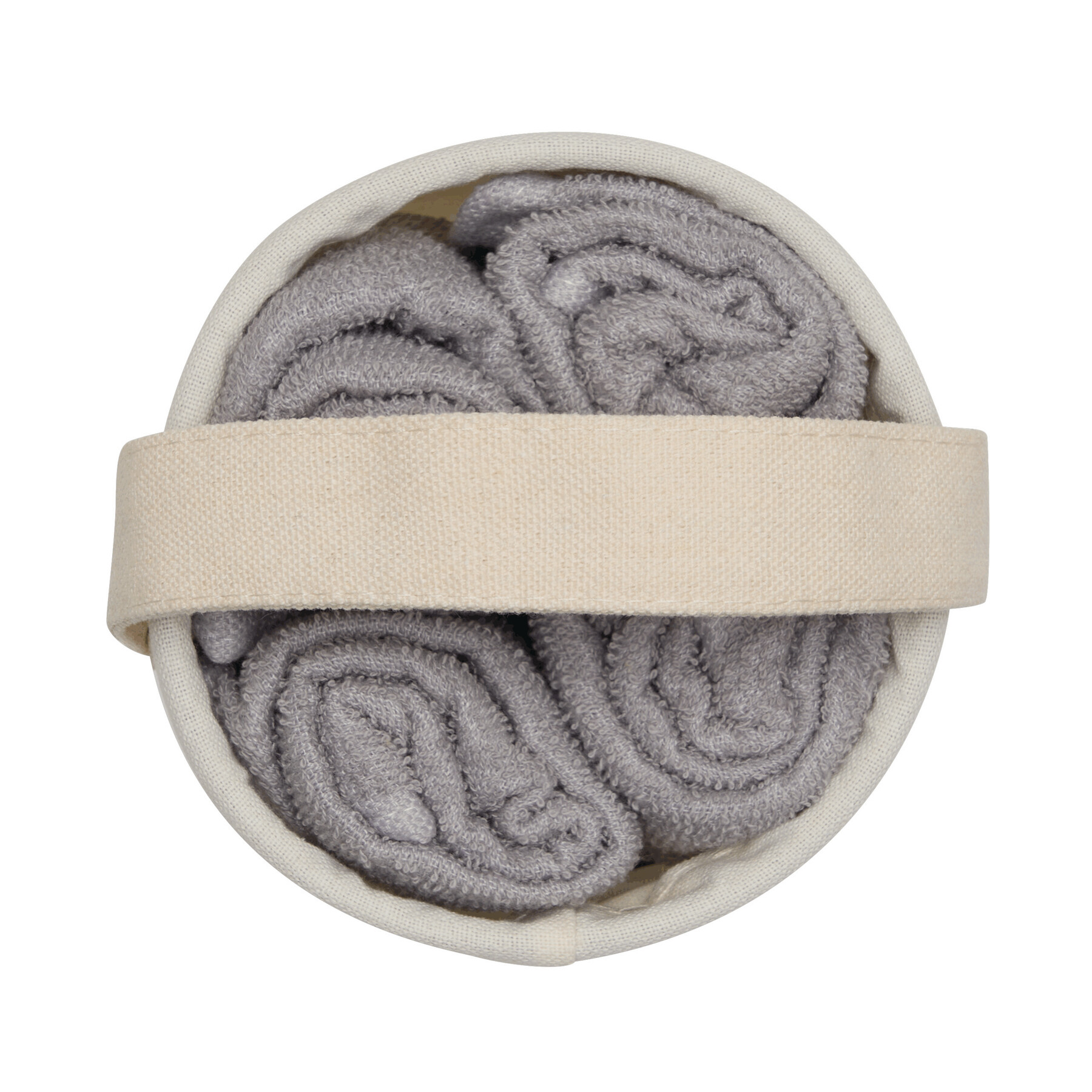 Zestaw ręczników DRY OFF, 5 elementów. Bardzo chłonne i szybko schnące, miękkie i puszyste, w dopasowanym koszu z odpinanym uchwytem do przenoszenia.