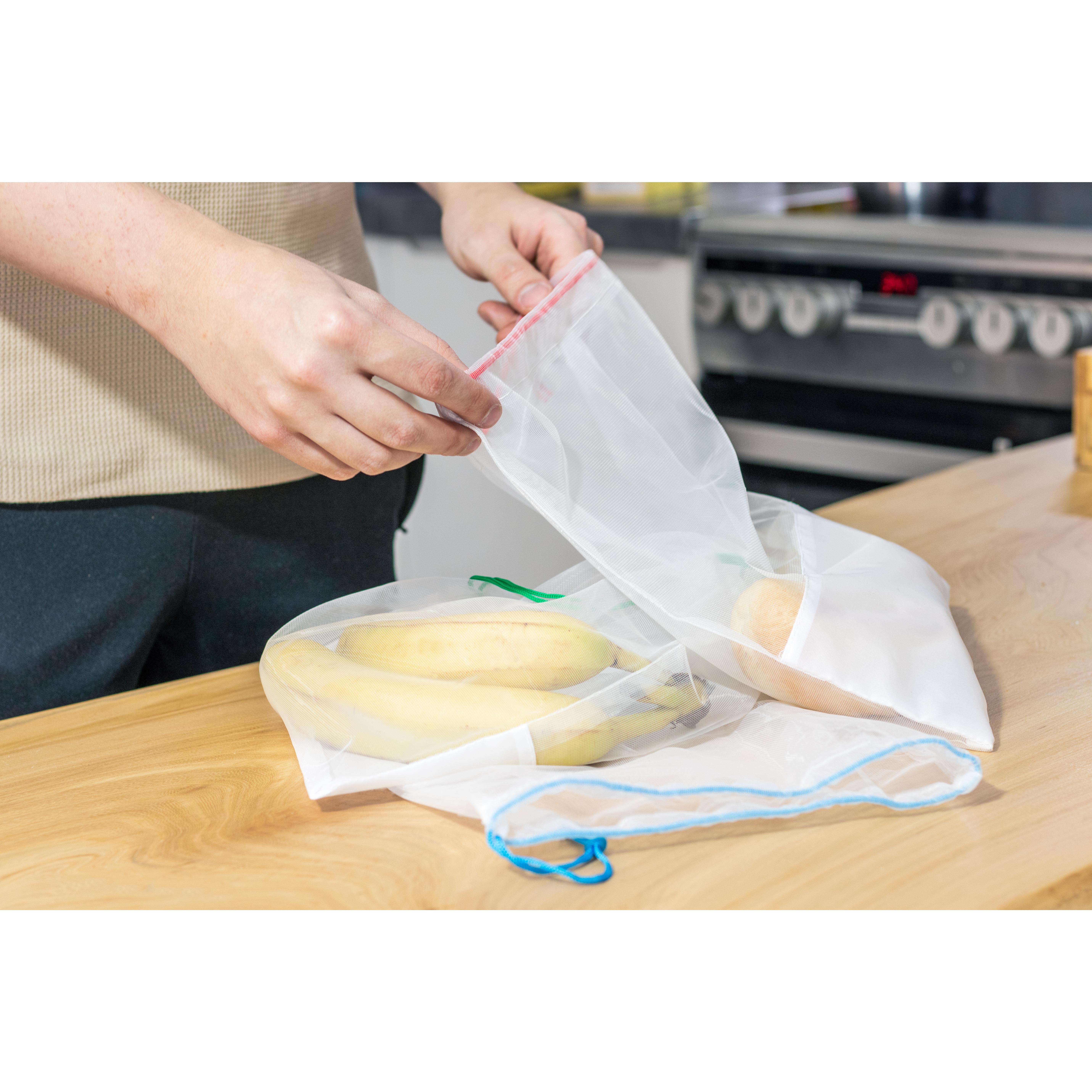 Zestaw 3 siatek na zakupy, wykonanych z materiału PET pochodzącego z recyklingu. To wspaniała alternatywa dla jednorazowych zrywek.
