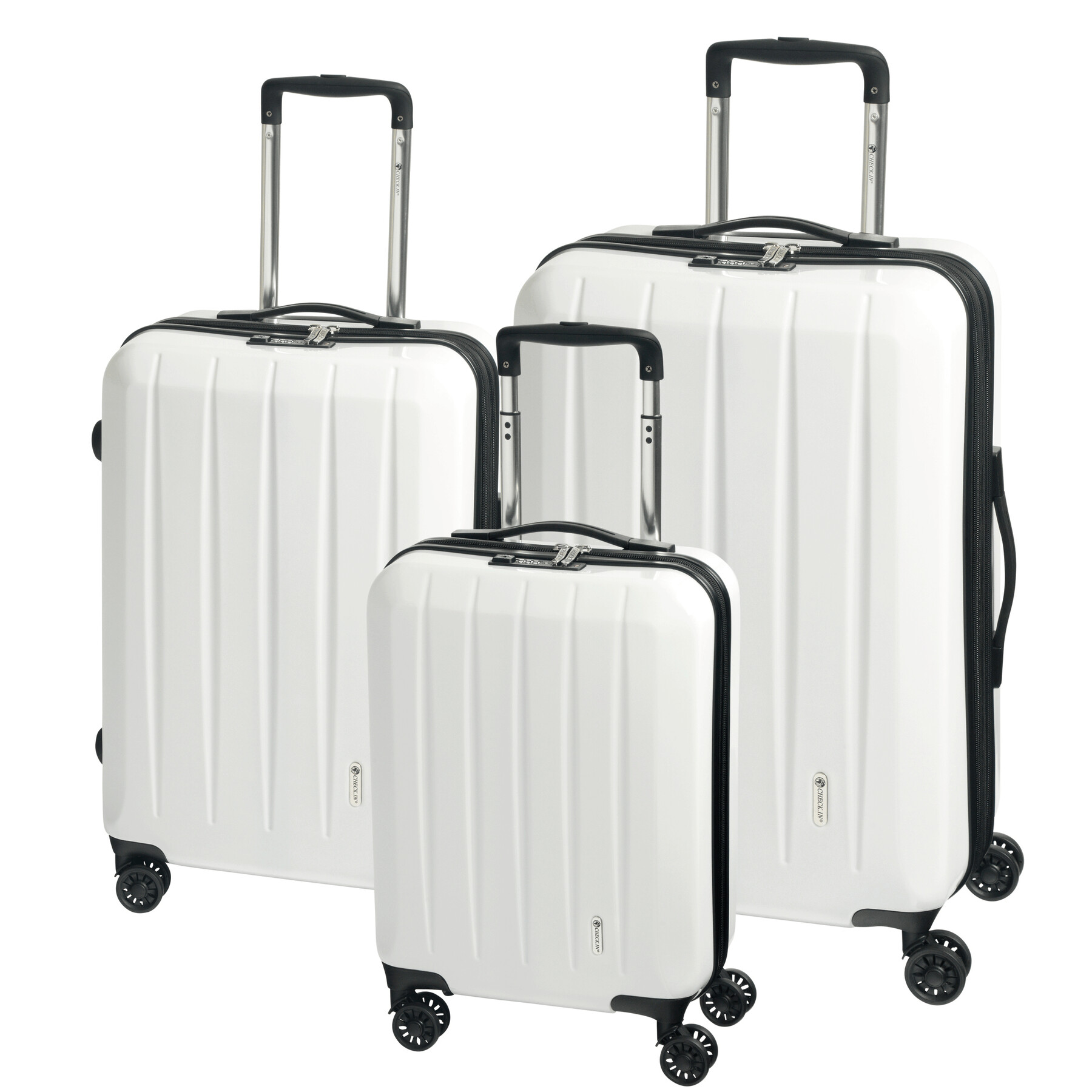 Zestaw walizek LONDON 2.0, 3-częściowy: ekskluzywne wyposażenie i wzornictwo, możliwość pakowania po obu stronach, możliwość rozszerzenia dla rozmiarów L + XL o dodatkowe ok. 10% objętości pakunkowej, wnętrze z przegrodą i przegródkami z siatki, aluminiowy uchwyt z blokadą u przyciskiem, 4 lekko pracujące podwójne koła obrotowe z możliwością obrotu o 360°, w zestawie 3-cyfrowy zamek szyfrowy TSA, każda walizka ma torbę ochronną.