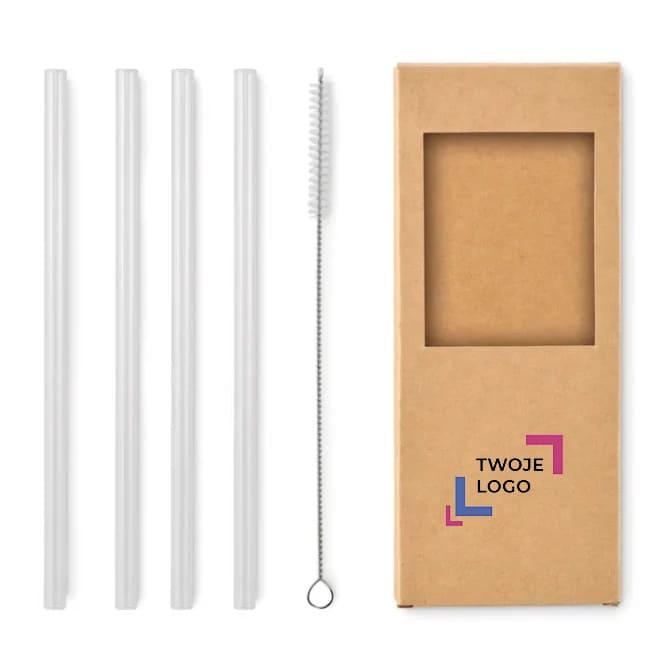4 szklane słomki wielokrotnego GLAW z naniesieniem logo