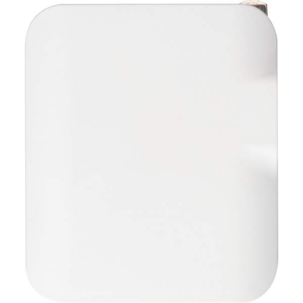 Adapter podróżny wykonany z plastiku w poręcznym etui. Dodatkowo posiada 2 wejścia USB. Dostępny w białym kolorze.