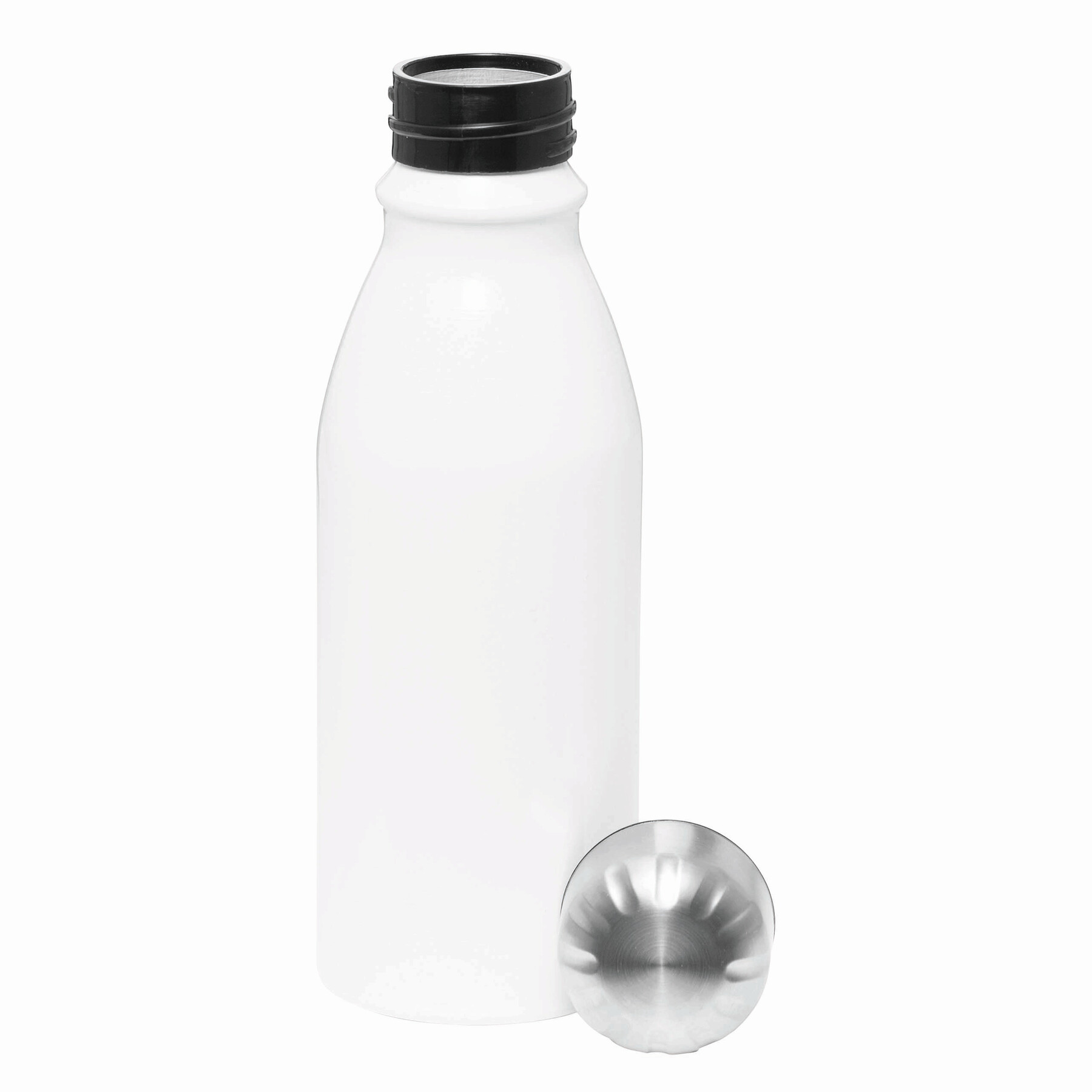Aluminiowa butelka do picia FANCY, ze srebrną, bezpieczną zakrętką, pojemność ok. 500 ml.