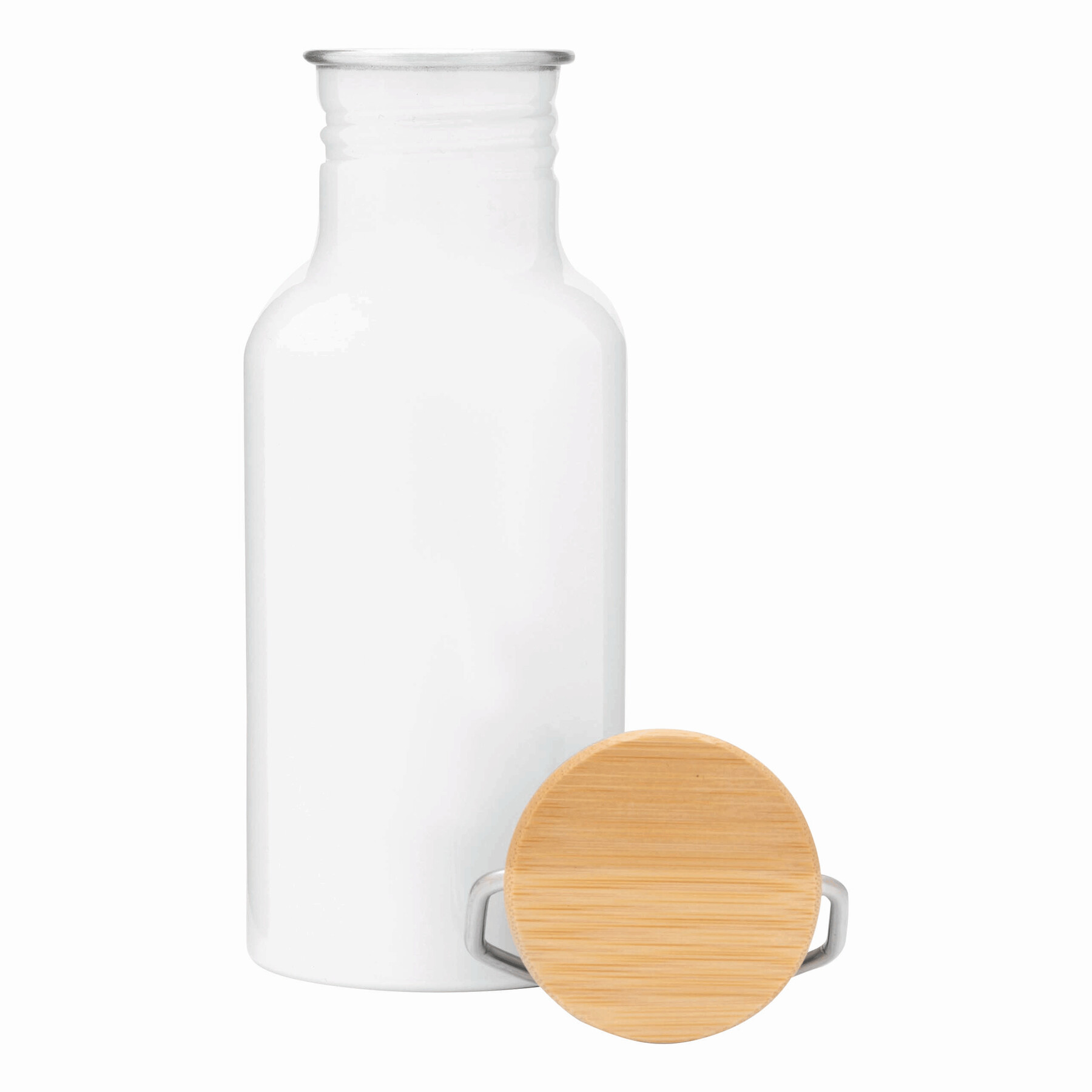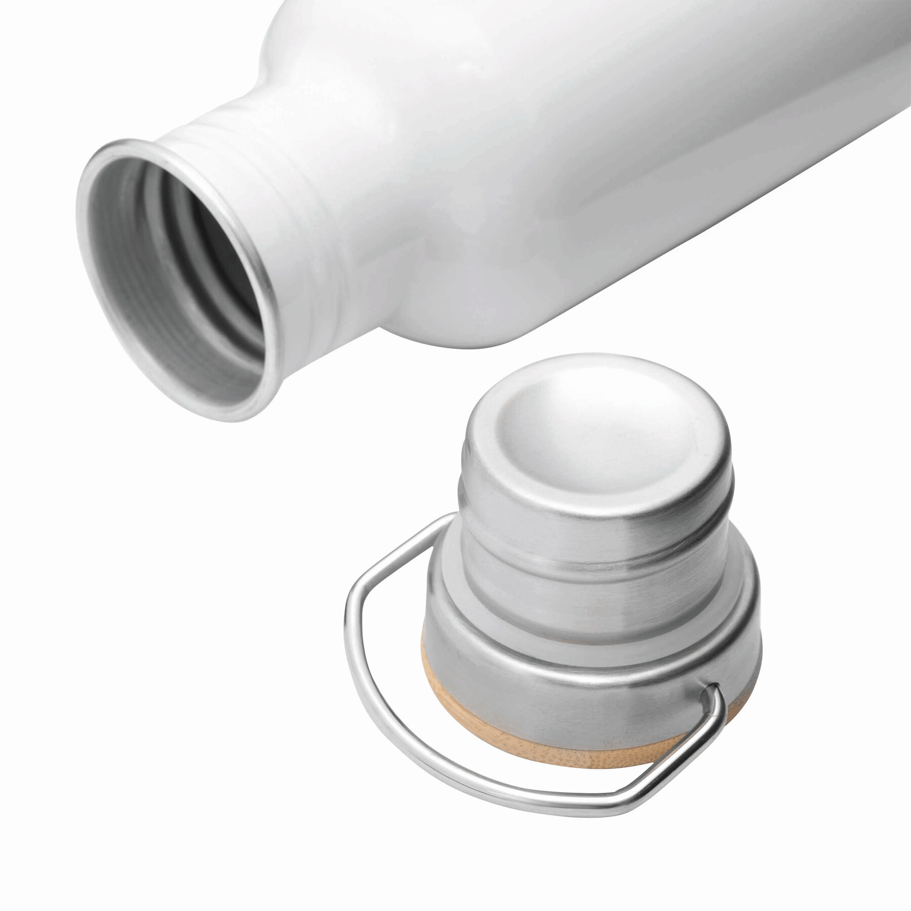 Aluminiowa butelka ECO TRANSIT z bambusową zakrętką i uchwytem do przenoszenia. Pojemność ok. 550 ml.