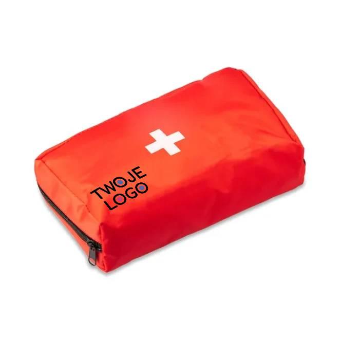 Apteczka samochodowa składająca się 40 elementów. W skład zestawu wchodzą: 1.1 plaster 2,5 cm x 5 m, 2. 4 plastry 10 x 6 cm, 3. 2 plastry 3,8 x 7.2 cm, 4. 2 plastry 12 x 2 cm, 5. 2 plastry 7,2 x 1.9 cm, 6. 4 plastry 7,6 x 2,5 cm, 7. 1 bandaż 6 cm, 8. 2 bandaże 8 cm, 9. 1 bandaż 10 cm, 10. chusta opatrunkowa 40 x 60 cm, 11. chusta opatrunkowa 60 x 80 cm, 12. 4 pary rękawiczek jednorazowych, 13. 2 elastyczne bandaże 5 cm, 14. 3 elastyczne bandaże 8 cm, 15. koc pierwszej pomocy 160 cm x 210 cm, 16. 3 kompresy sterylne, 17. 2 bandaże trójkątne 136 x 96 x 96 cm, 18. nożyczki, 19. 2 chusteczki nawilżane 20 x 10 cm oraz instrukcja. Produkt zgodny z Dyrektywą 93/42/EEC