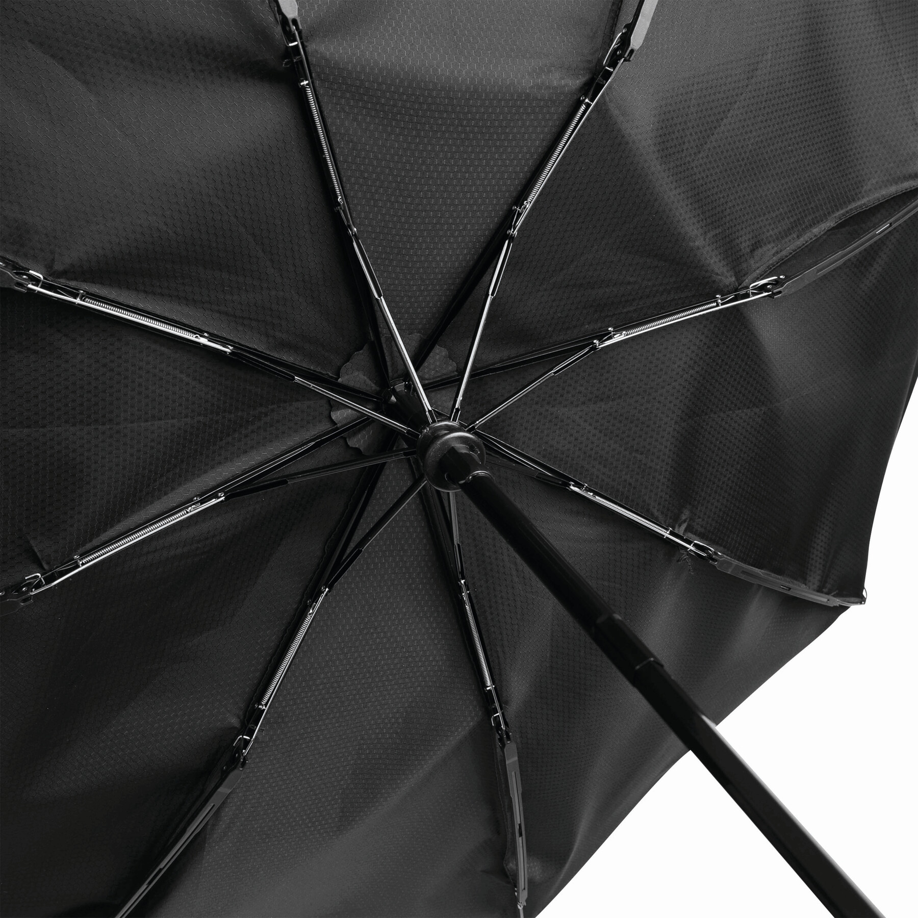 Automatycznie otwierany i składany, wiatroodporny parasol ORIANA z dopasowanym kolorystycznie pokrowcem, 3 częściową metalową laską, z szynami z metalu, plastiku i włókna szklanego, gumowany uchwyt z dopasowanym kolorystycznie paskiem na nadgarstek, poszycie z poliestru pongee z pokrowcem o strukturze plastrów miodu, z zapięciem na zatrzask.