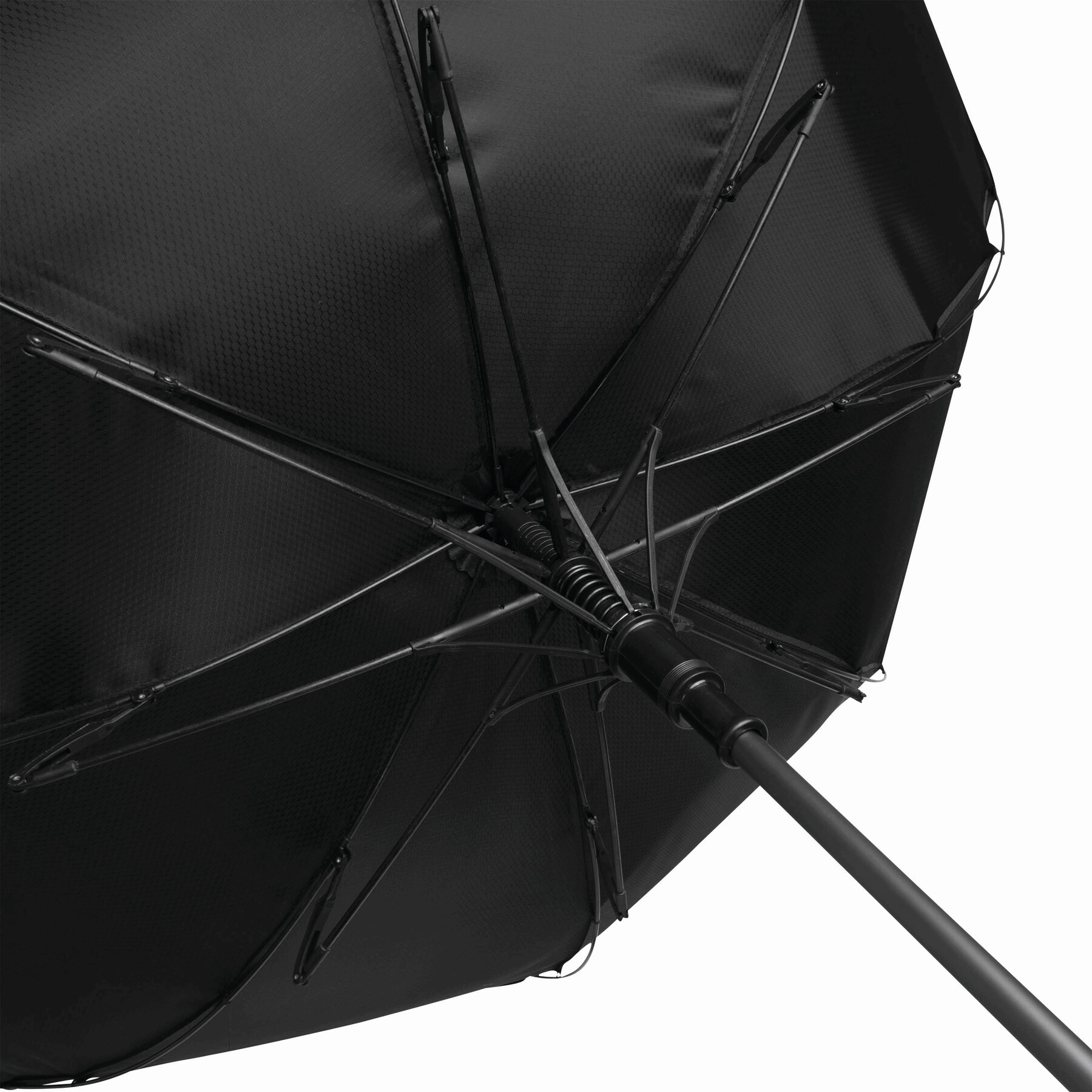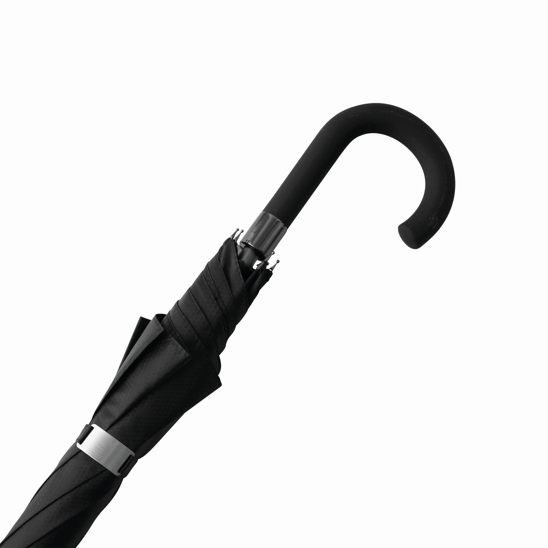 Automatyczny parasol JUBILEE. Aluminiowa laska, szyny z włókna szklanego, metalowe kolce, dopasowany kolorystycznie, gumowany, zaokrąglony uchwyt, poszycie z poliestru z pokrowcem o strukturze plastrów miodu, pasek spinający z zapięciem na zatrzask i metalową płytką na logo.