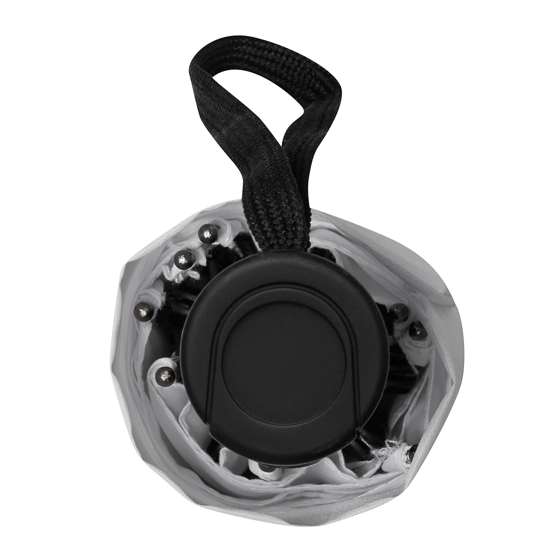 Automatyczny, wiatroodporny, kieszonkowy parasol MISTRAL. Posiada trzyczęściowy, metalowy trzon ze szkieletem z włókna szklanego oraz metalowe końcówki. Dodatkowo dla wygody użytkowania wyposażony jest w uchwyt z gumową powłoką. Poszycie wykonane jest z poliestru-pongee. Parasol zapinany jest na rzep.