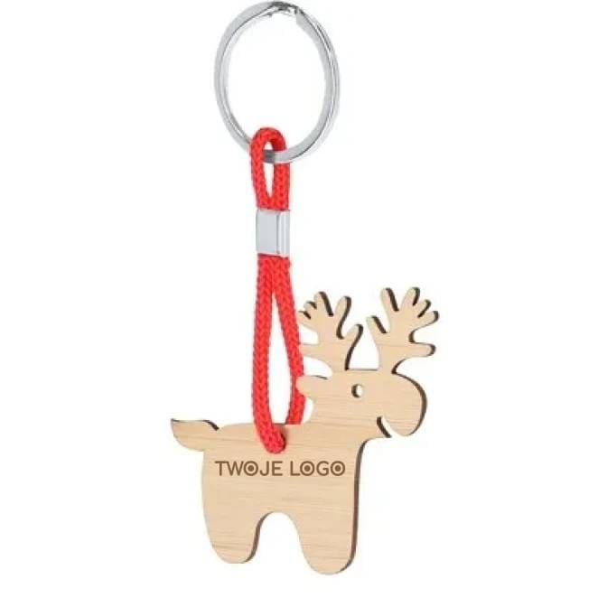 Bambusowy brelok do kluczy, świąteczny motyw Renifer do drukowania logo