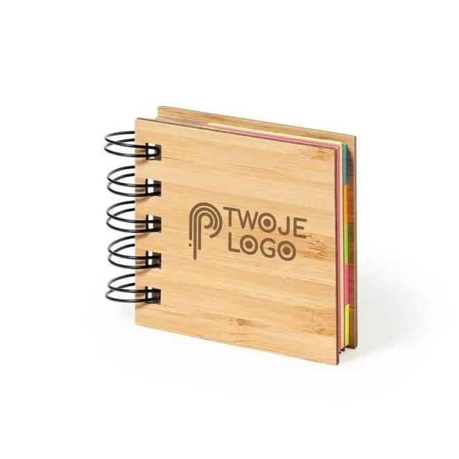 Bambusowy zestaw do notatek, karteczki samoprzylepne do naniesienia logo