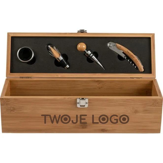 Bambusowy zestaw do wina, 4 el., skrzynka do wina z naniesieniem logo