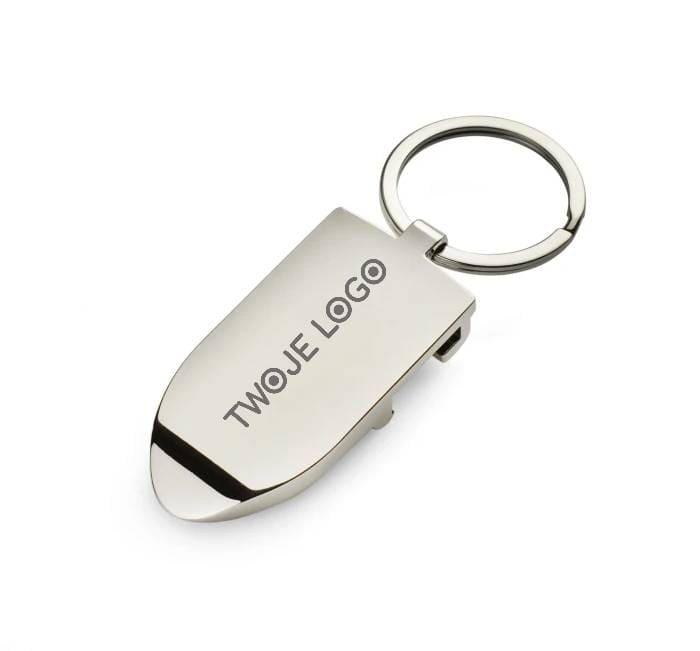 Doskonały przykład tego jak można połączyć atrakcyjny wygląd z użytecznością. Metalowy brelok oprócz tradycyjnej funkcji zawieszki do kluczy wyposażony jest w: żeton do wózków sklepowych, stojak do urządzeń mobilnych oraz otwieracz do butelek. Wszystkie te funkcje połączono w jednym, niewielkim gadżecie. Znakowanie jest możliwe na metalowej wierzchniej części.