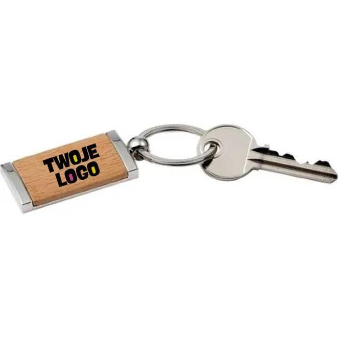 Prostokątny brelok do kluczy z elementem z drewna bukowego