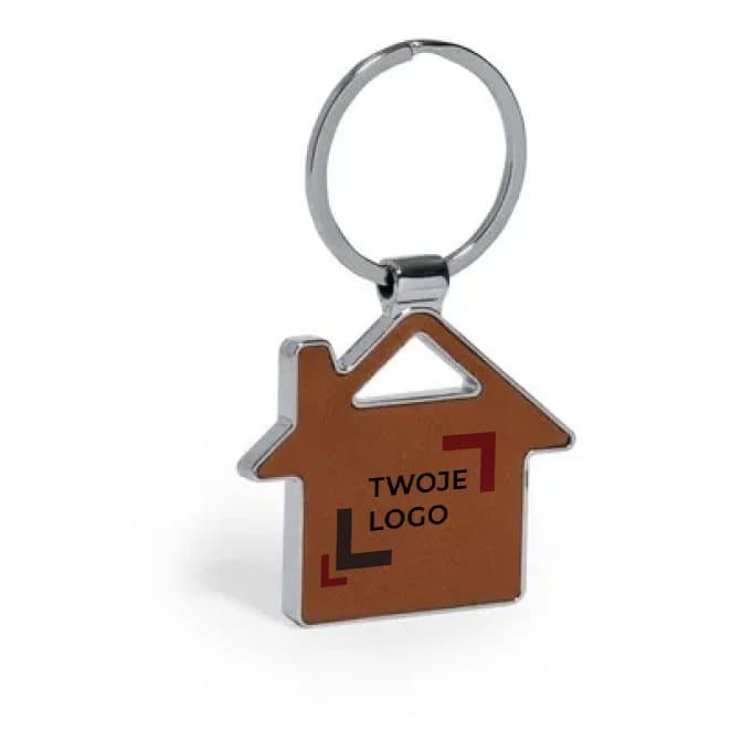 Brelok domek do kluczy z frontem i tyłem ze skóry z recyklingu do nałożenia logo