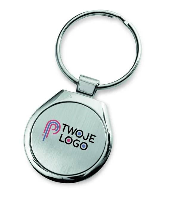 Brelok o klasycznym kształcie wykonany z chromowanego metalu. Logo wygrawerujemy na blaszce umieszczonej wewnątrz.