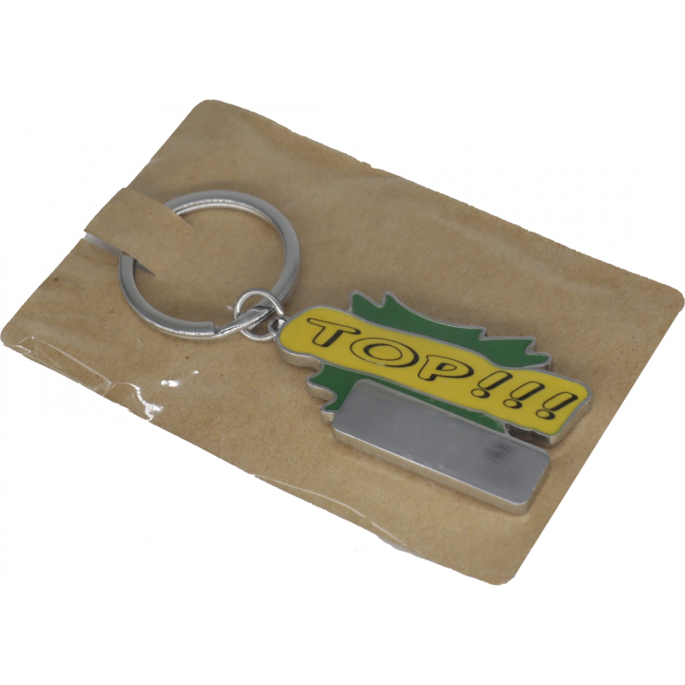 Brelok metalowy CrisMa z kolorowym, lakierowanym przodem. Logotyp można umieścić na metalowej blaszce.