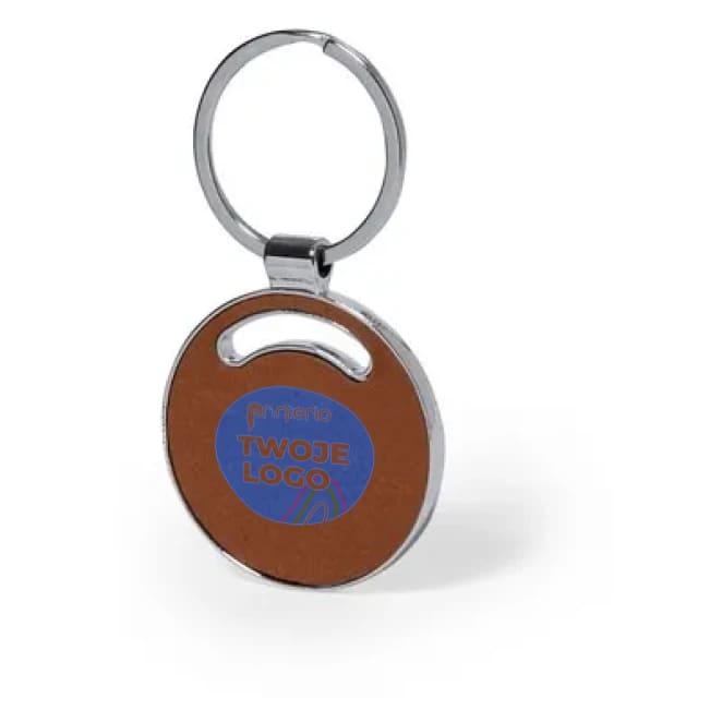 Brelok okrągły do kluczy z frontem i tyłem ze skóry z recyklingu do drukowania logo