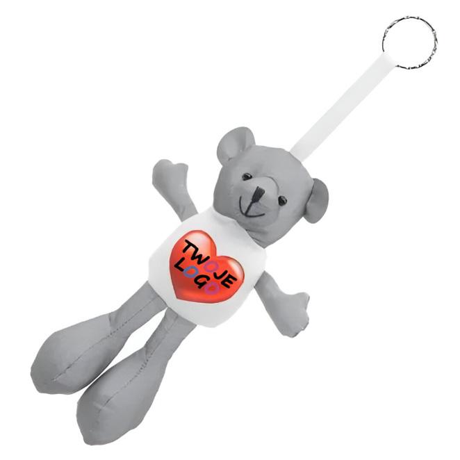 Ręcznie szyty brelok "miś" w koszulce. Wykonany z materiału odbijającego światło.