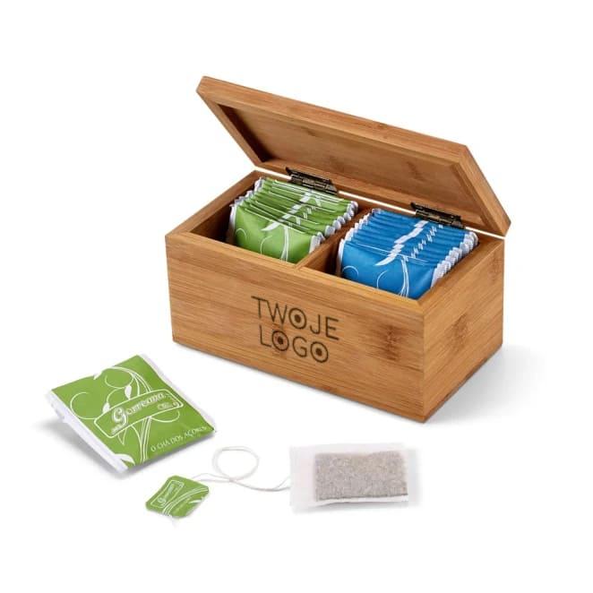 BURDOCK. Bambusowe pudełko na herbatę z 2 przegrodami i zamknięciem na magnes do drukowania logo