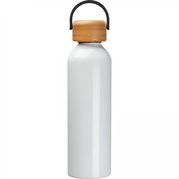 Butelka wykonana z aluminium pochodzącego z recyklingu, o pojemności 600 ml, posiada bambusową zakrętkę z praktycznym uchwytem.