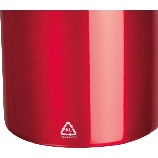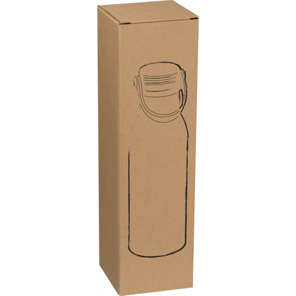 Butelka do picia o pojemności 750 ml z alumniunium pochodzącego z recyklingu. Do zakrętki przymocowany jest silikonowy pasek, ułatwiający przenoszenie.