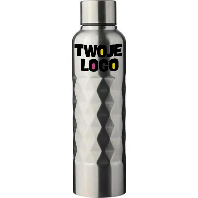 Butelka sportowa 800 ml ze stali nierdzewnej, pojedyncza warstwa ze stali 304, zakręcane wieczko, tekstura w kształcie diamentu, ikona recyklingu na produkcie, zapakowana w brązowe kartonowe pudełko