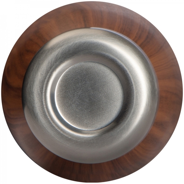 Metalowa butelka o podwójnych ściankach, o pojemności 500 ml, wykonana ze stali nierdzewnej. Wykończenie imitujące drewno.