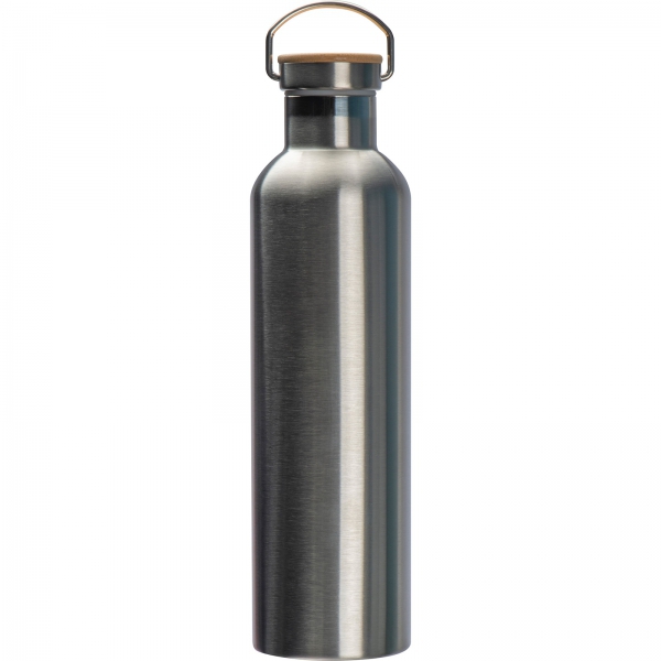 Butelka ze stali nierdzewnej, z podwójnymi ściankami i zamknięciem z bambusowym wieczkiem i rączką do przenoszenia. Pojemność 1000 ml.