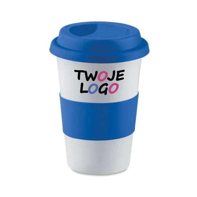 Pojedynczy ceramiczny kubek z silikonową nakładką i panelem do chwytania. Pojemność 400ml. Transfer ceramiczny jest odporny na zmywanie w zmywarkach. Jako że jest to jednowarstwowy kubek, nagrzewa się też zewnętrzna strona.