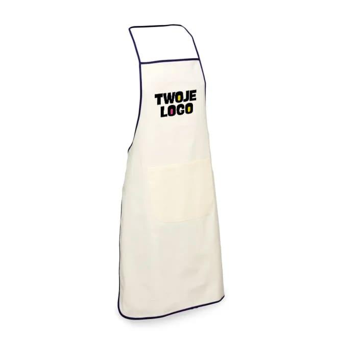 Fartuch z miękkiego materiału 100% bawełny (105 g/m²), kolor naturalnego włókna, z kolorowymi detalami. Fartuch z 1 przednią kieszenią i sznurkami do ściągania. 600 x 900 mm | Kieszeń: 250 x 200 mm