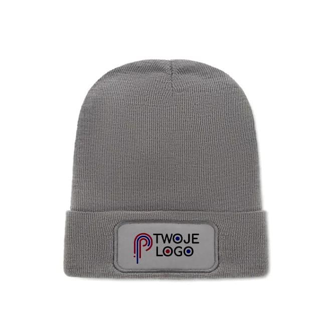 Dzianinowa czapka unisex z miękkiego, rozciągliwego poliestru RPET z mankietem i naszywką.