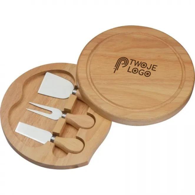 Drewniana, rozkładana deska wewnątrz której znajdziesz zestaw 3 sztućców do sera.