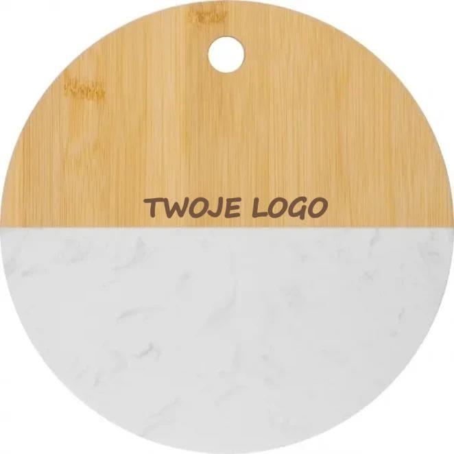Deska kuchenna bambusowa z marmurem SAN DIEGO z logo firmy
