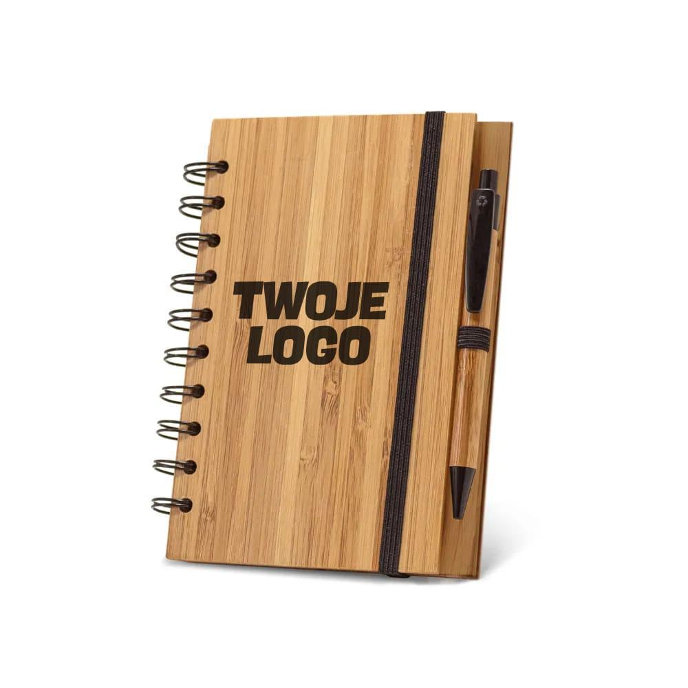 DICKENS A5. Notatnik na spirali A5 z bambusa z papierem z 100% recyklingu z nadrukiem logo