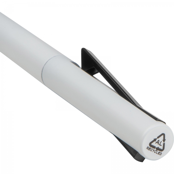 Długopis piszący na niebiesko, z półżelowym wkładem, wykonany z aluminium pochodzącego z recyklingu. Powierzchnia długopisu matowa.